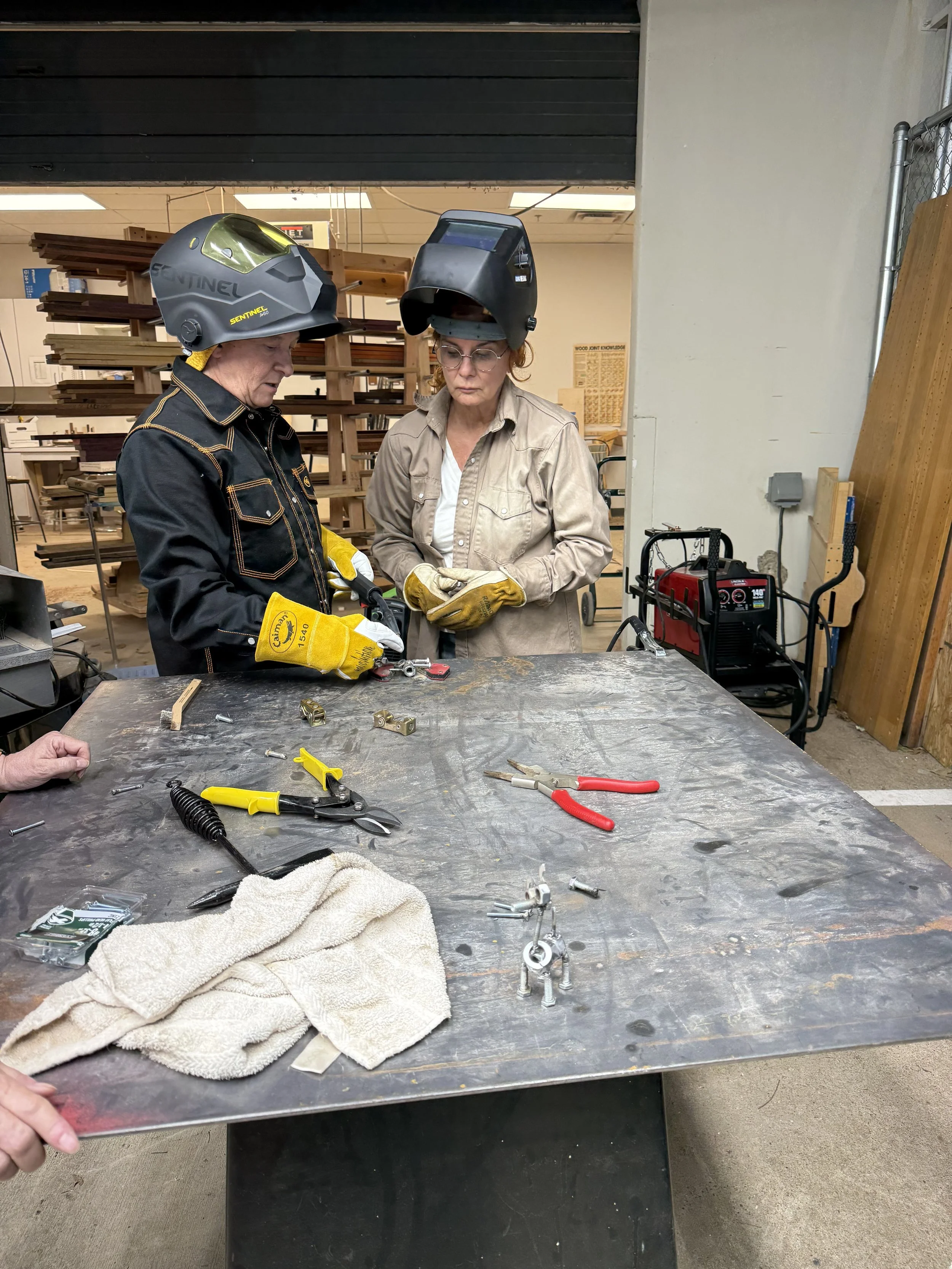 Beginning with small individual projects—creating whimsical animals from bolts, nuts, washers, and nails—while building foundational welding skills, we’ll move into techniques that support constructing larger works using scrap metal.